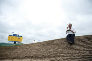 18th bunker after winning the British Open golf championship at Royal St