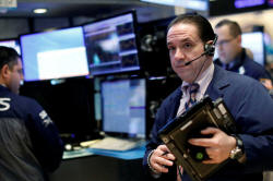 Traders work on the floor of the New York Stock Exchange (NYSE) in
