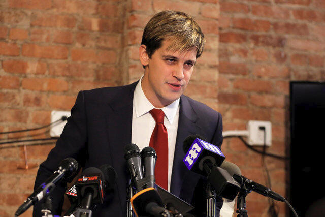 Milo Yiannopoulos addresses the media during a news conference in