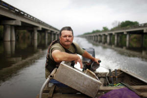 Crawfisherman Jody Meche looks over rising waters in the Atchafalaya
