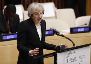 Britain's Prime Minister Theresa May speaks during a high-level