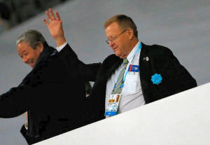 John Coates (R) takes part in the opening ceremony. REUTERS/Issei