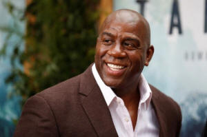 Former NBA basketball player Earvin Magic Johnson poses at the