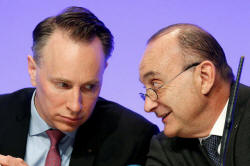 CEO Jacques de Peretti (R) during the company's 2016 annual results