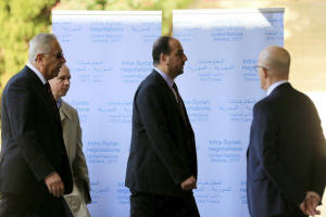 arrived separately to meet U.N. mediator Staffan de Mistura in Geneva on