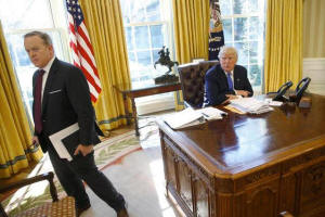 White House Communications Director and spokesman Sean Spicer (L)