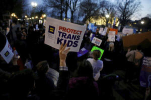 Transgender activists and supporters protest the Trump