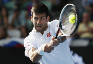 Serbia's Novak Djokovic hits a shot during his Men's singles second