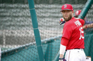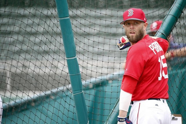 Boston Red Sox second baseman Dustin Pedroia (15) works out prior to