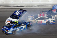 Bowyer (14) wreck during the 2017 Daytona 500 at Daytona