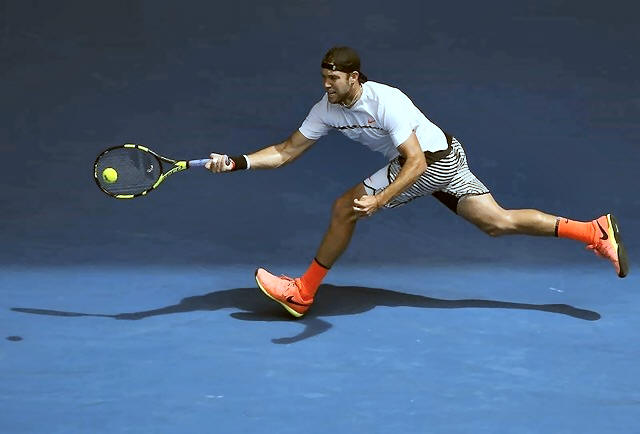 Jack Sock of the U.S. hits a shot during his Men's singles third