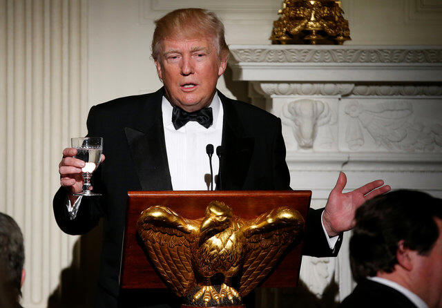 U.S. President Donald Trump makes a toast during the Governor's