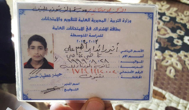 The ID card/childhood photo of teenage Islamic State militant Atheer
