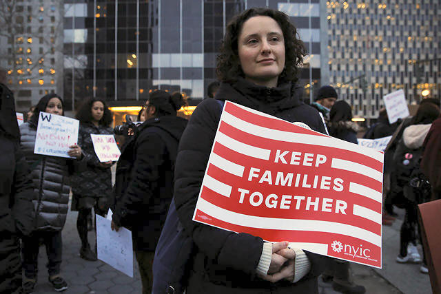People gather to protest against President Donald Trump's travel ban