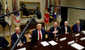 President Donald Trump speaks during his meeting with health