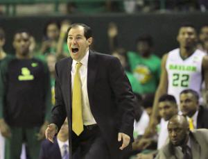 Baylor Bears head coach Scott Drew reacts after a play in the second