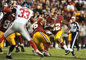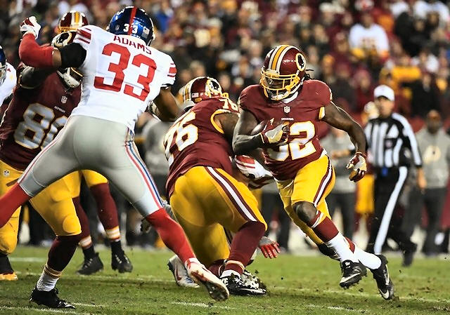 Redskins running back Robert Kelley (32) rushes the ball as New York