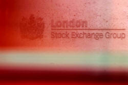 A red London bus passes the Stock Exchange in London, Britain,