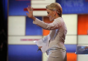 Fox News Channel anchor and debate moderator Megyn Kelly waves to