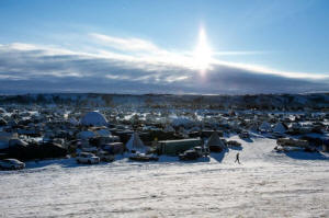 scene of demonstrations by Native Americans, environmentalists, military