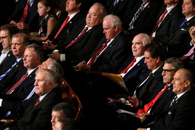 Republican members of Congress watch as they and their fellow