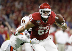 Oklahoma Sooners wide receiver Mark Andrews (81) runs the ball after