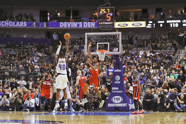 Mavericks forward Harrison Barnes (40) scores during the fourth