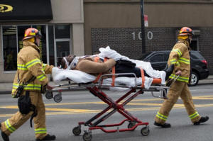 man is stretchered after