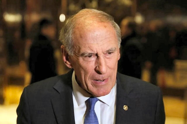 Senator Dan Coats (R-IN) stops to speak to the news media after a