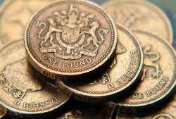 A pile of one pound coins is seen in a photo illustration shot June