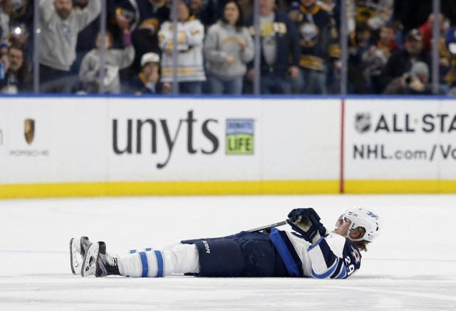 Laine was injured during a collision with Sabres defenseman Jake
