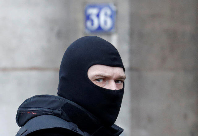 Thieves wearing ski masks and clothes with police markings burst
