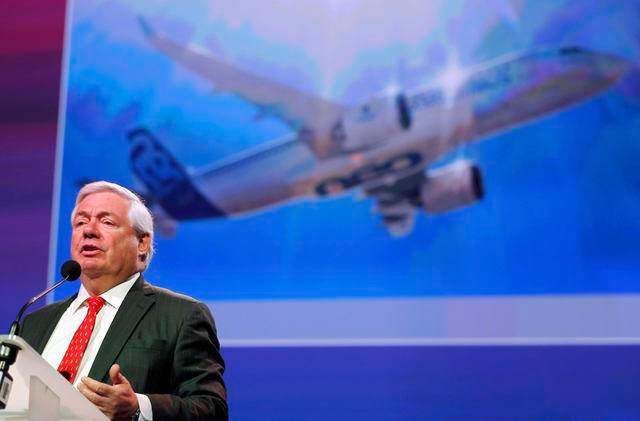 Airbus Chief Operating Officer-Customers John Leahy delivers his