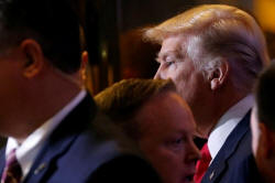 U.S. President-elect Donald Trump leaves a press conference in Trump