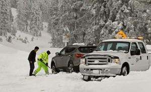 stuck in the snow near Incline Village, Nevada, U.S. January 11,