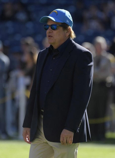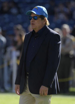 San Diego Chargers owner Dean Spanos reacts during a NFL football game