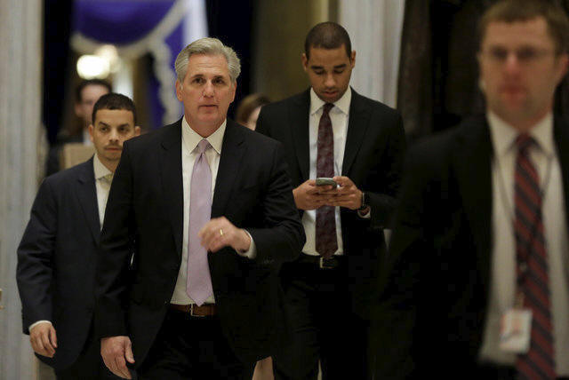 House Majority Leader Kevin McCarthy (R-CA) (L) walks to the House