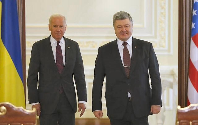 Ukrainian President Petro Poroshenko (R) and U.S. Vice President Joe