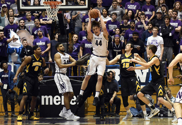 Northwestern Wildcats forward Gavin Skelly (44) grabs a rebound