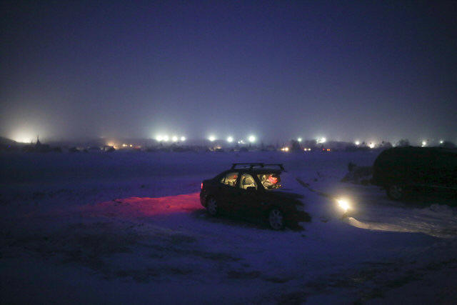 A woman is seen sitting inside her vehicle during dusk in the