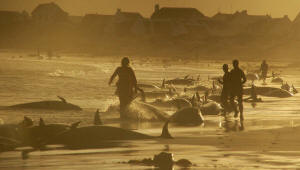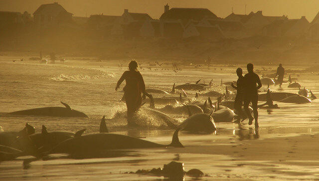 Guard spotted the stranded mammals, members of the dolphin