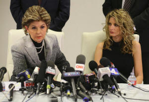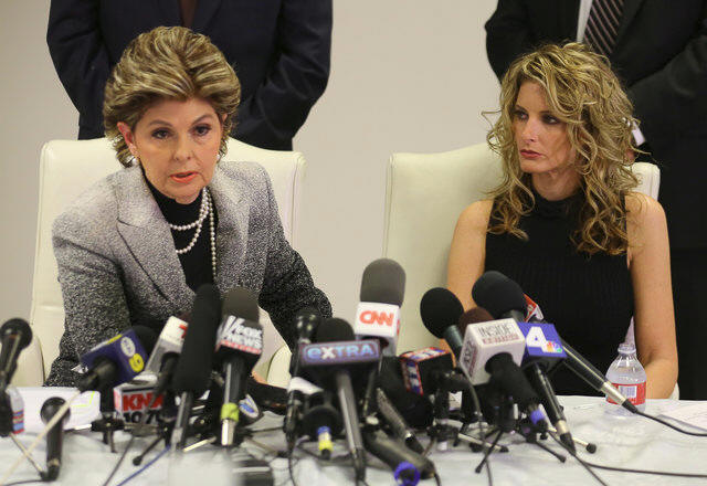 Summer Zervos listens as her attorney Gloria Allred speaks during a