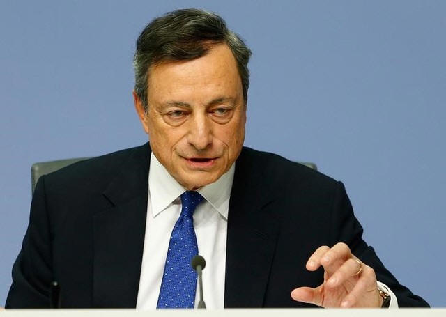 European Central Bank (ECB) President Mario Draghi addresses a news