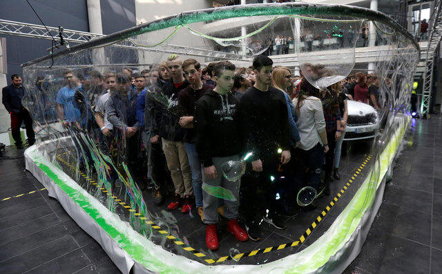 Record in 2014 for "most people inside a soap bubble", which at