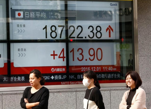 Nikkei average outside a brokerage in Tokyo, Japan, December 1,