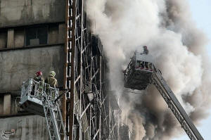 firefighters after Iran building collapse
