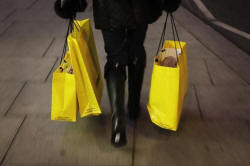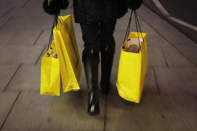 A woman carries shopping bags on Oxford Street in London, December