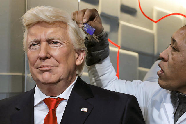 A technician combs the hair of a waxwork of U.S. President-elect Donald Trump at the Musee Grevin in Paris, France, January 19, 2017. REUTERS/Philippe Wojazer |
