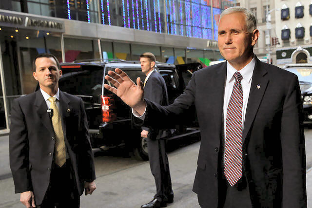 Vice President-elect Mike Pence arrives at Trump Tower in Manhattan,