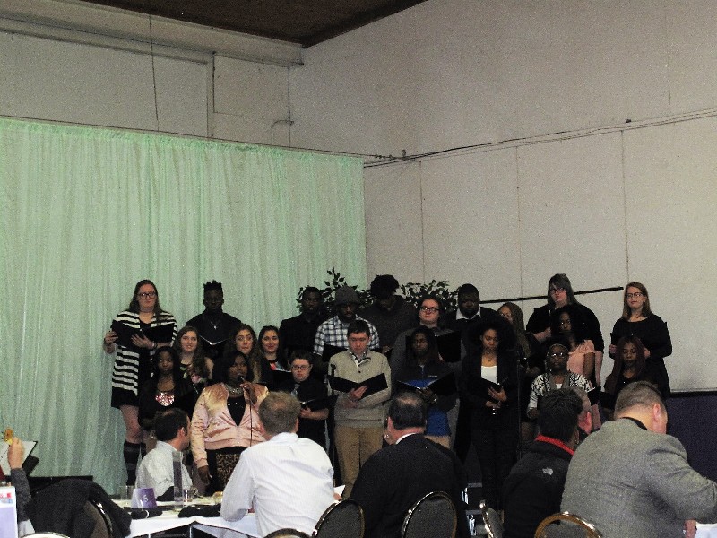 While the collection was taken, the Lincoln College Chorale and Second Baptist Youth Choir asked everyone to join in as they sang "We Shall Overcome.”